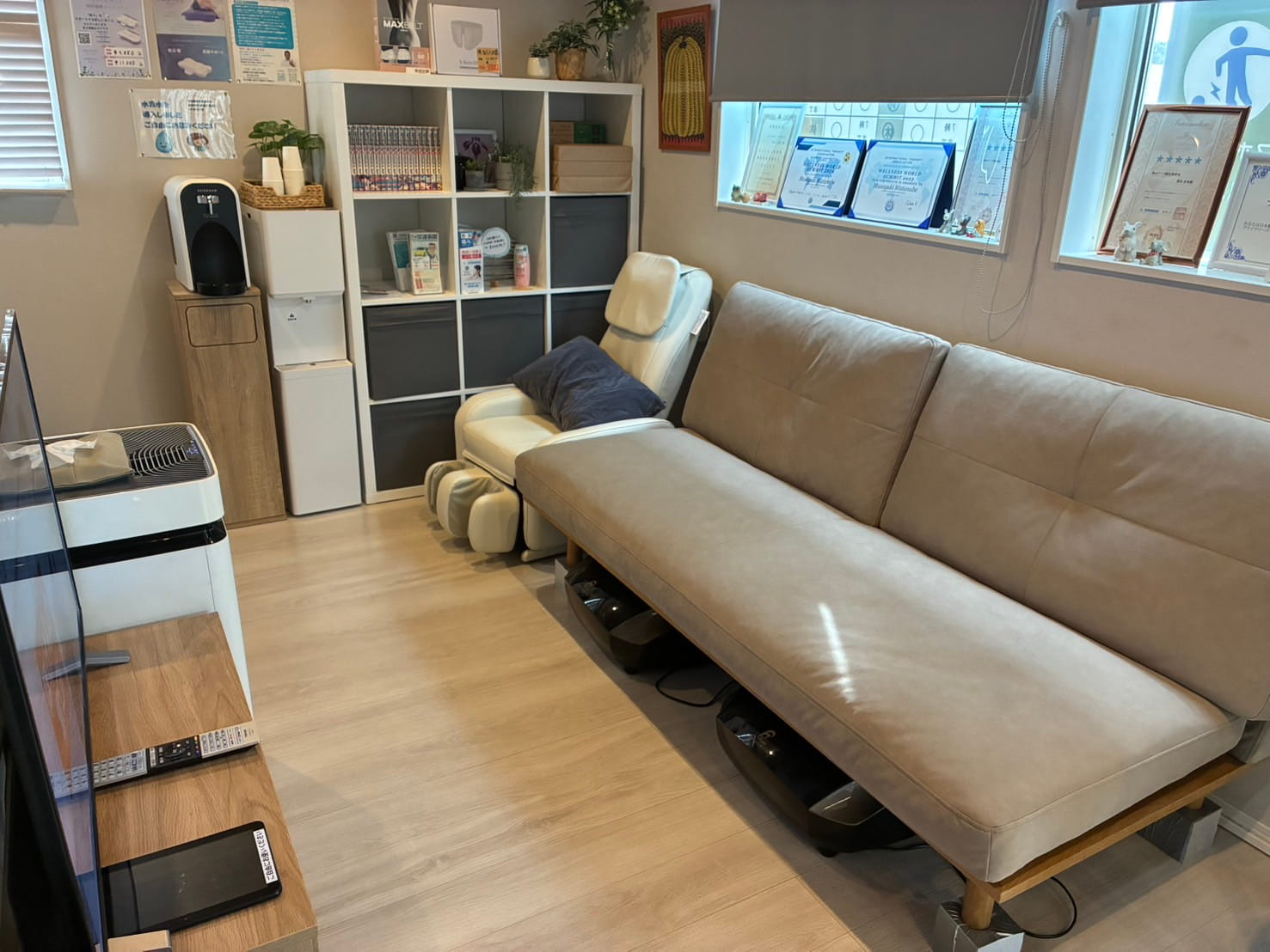 症状の早期回復の為に物療機はとても大事な要素になります。また、院内を清潔に保ち、ハイスペック空気清浄機やアルコール消毒等でウイルス対策もバッチリ行なっておりますので、安心して通っていただけるかと思います。